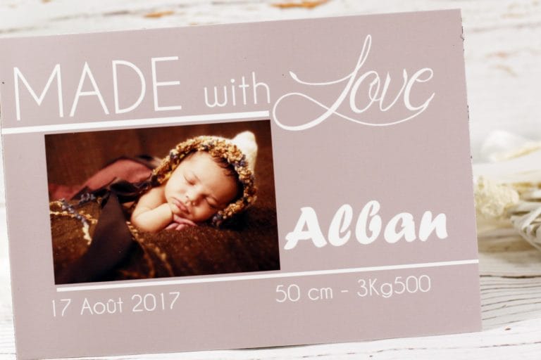 Le faire part magnet s’impose de par son originalité et son côté ludique et moderne. Il restera des années sur le réfrigérateur de votre famille et de vos amis.